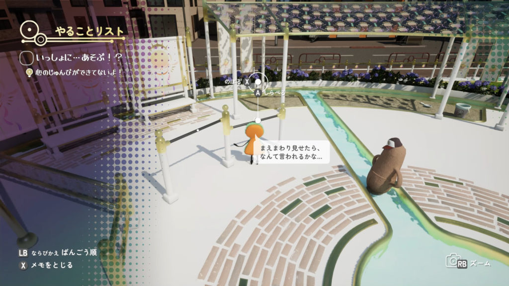 こふんくんを操作し、ちょっと懐かしい雰囲気の公園や街を探索します。