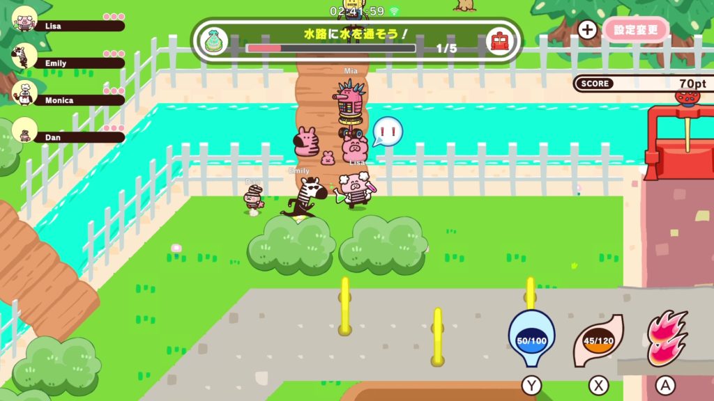 動物たちは「うんぴ」でダッシュ強化したり進路をふさいだり、スイッチを動かしたりと大活躍。
