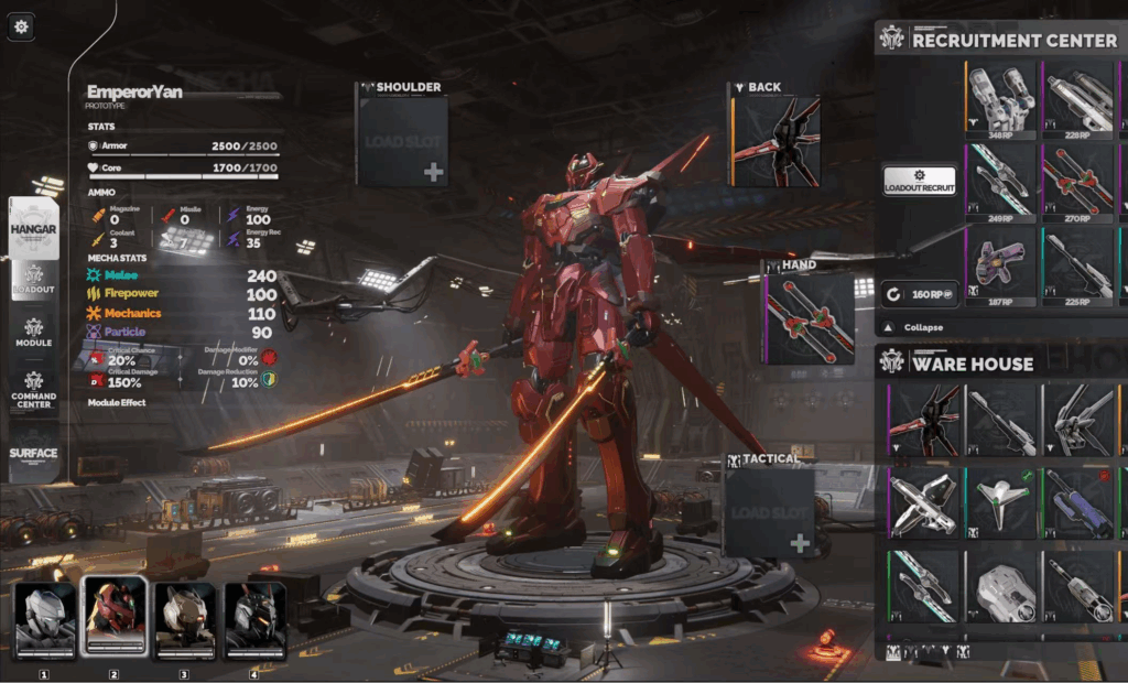 プレイヤーは多彩な装備を組み合わせ、六角形のモジュールシステムによって独自の戦闘スタイルを構築。機体そのものがプレイヤーの戦略を体現します。