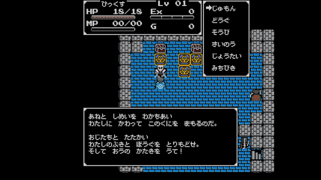 また、グラフィックの雰囲気は往年の名作『ドラゴンクエストI』を思わせ、画面構成や効果音などもどこか懐かしさを呼び起こすつくりになっています。