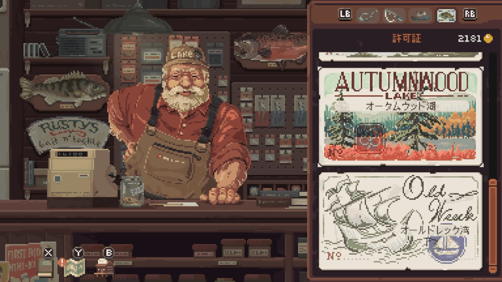 Just visit the familiar old shopkeeper at Rusty’s Bait n’ Tackle and purchase the special license to set out on your journey.