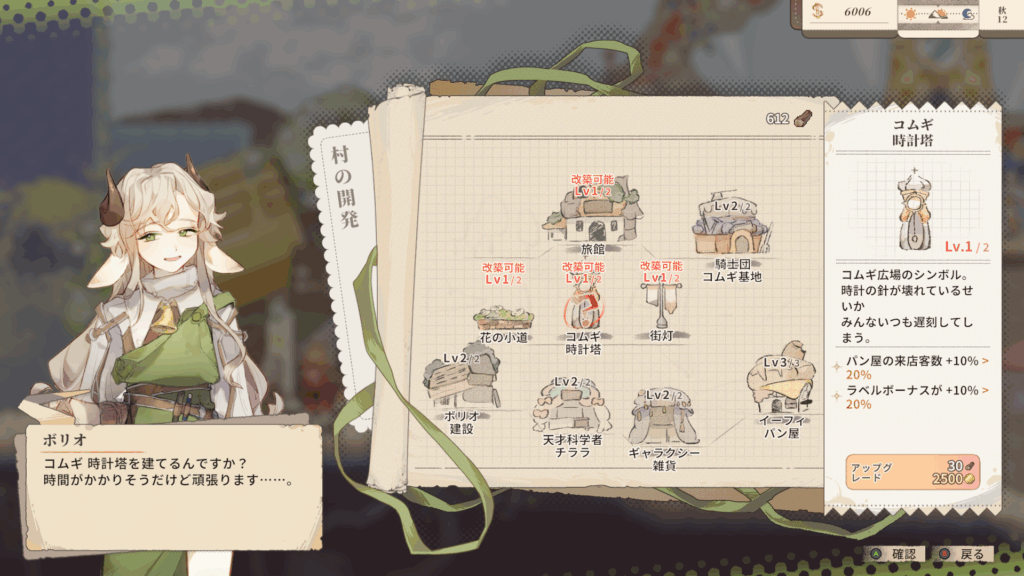 お店やスキルのアップグレード