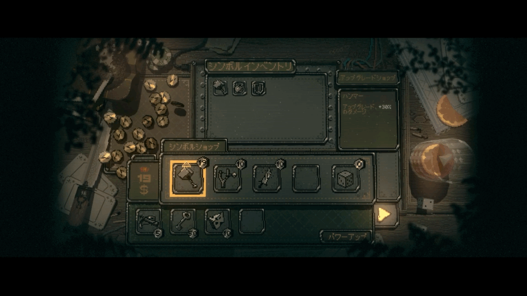 これらのシンボルやアイテムは、戦闘で得たコインを使って入手できます。