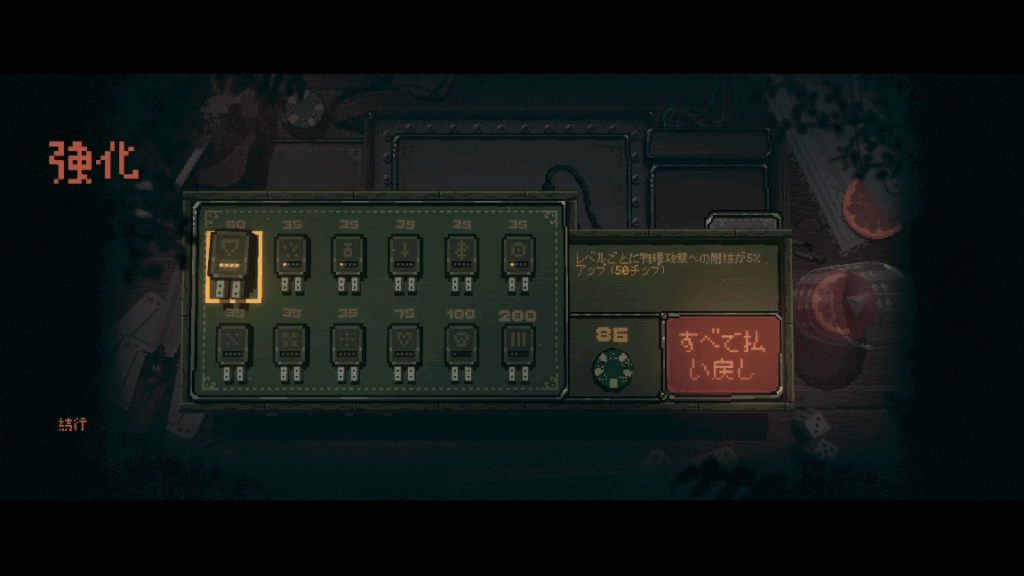 バトルに勝利すると、プレイヤーの恒久的な成長要素となる「チップ」が手に入ります。