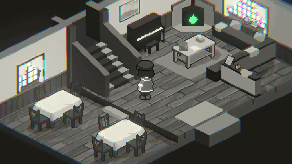 ピクセルアートで描かれたその世界、夜には全てが蒼く染まり、エメラルドのような光が強く息づき始める――『Green Light』。