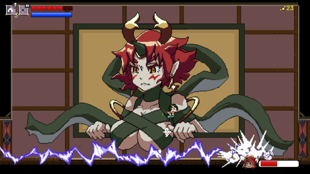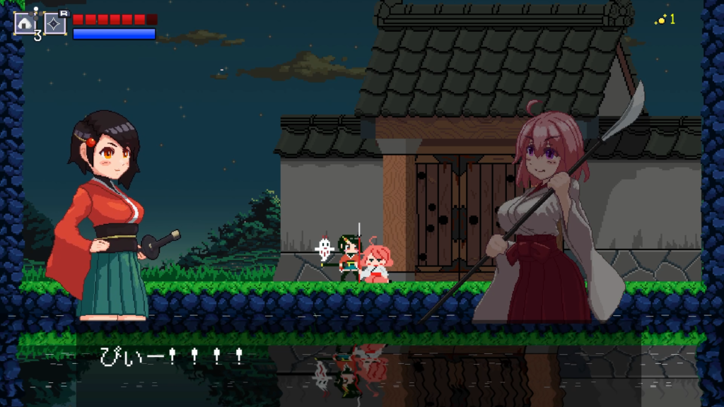 ピクセルアートで表現された和風の世界を舞台に、主人公・カエデを操作し、妖怪たちと戦っていく2Dアクションゲームです。