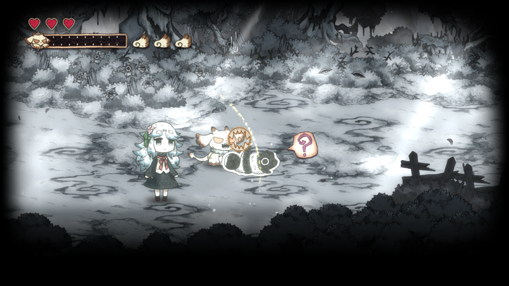 絵本シリーズの特徴であるアナログイラストを使った絵本的な表現はそのままに、本作ではフィールドをあえてモノクロにすることにより、今までの絵本シリーズとは一線を画す、不気味で奇妙ながら、どこか美しい世界を表現しています。