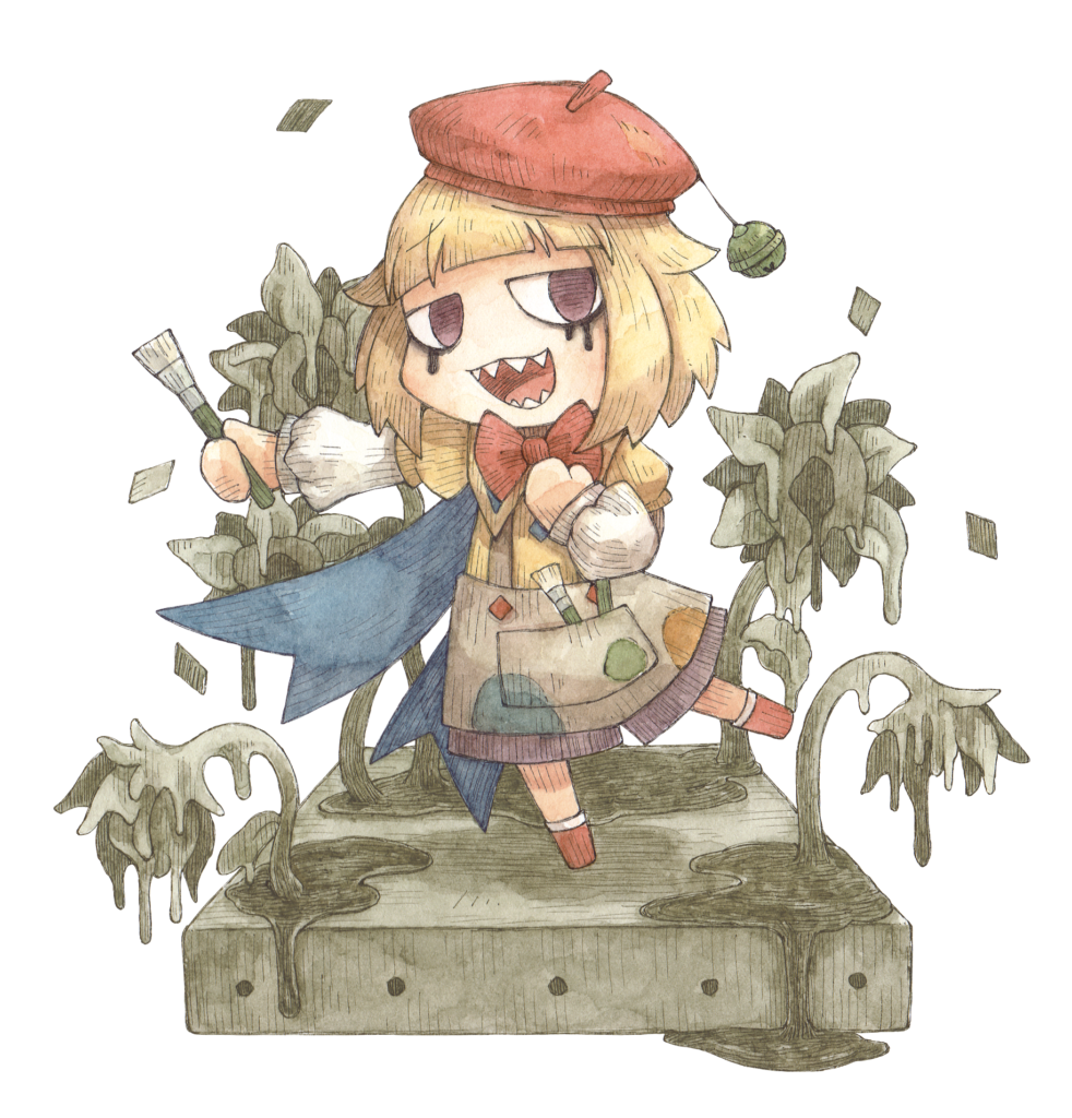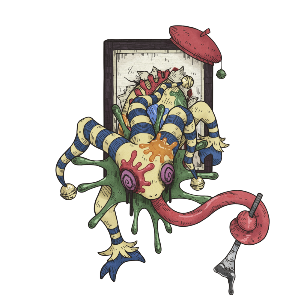 絵画から飛び出したような色とりどりの異形「落書き姫」に変異した少女。父親のような誇り高い画家になるために地道な努力を続けていた彼女は、道化に扮して絵を描いた結果、貴族たちの間で人気者となりました。ただ、その人気は長続きせず、精神的に追い込まれてしまいます。