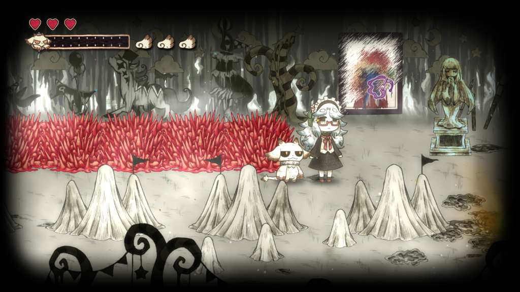 道化画家の少女のトラウマが具現化した世界「未完のキャンバス」。