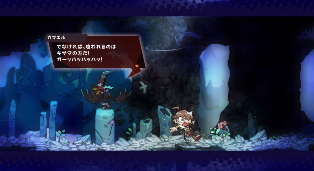 ルゥトが進むステージにはモンスターがたくさん!カマエルの力を借りて、襲いくるモンスターに立ち向かいましょう。倒した敵は捕食することができます。