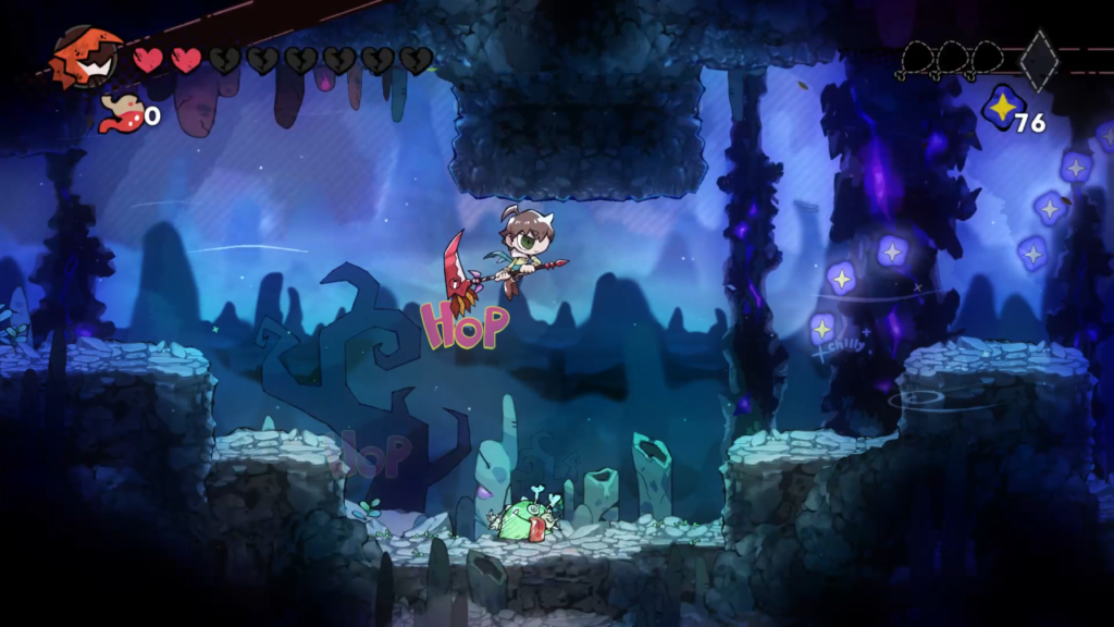 カートゥーン調に描かれたビジュアルと相まって、「走る」「ジャンプする」などのありがちな行動も「DASH」「HOP」と文字が出てくることで、まるでアニメーションを見ているようなワクワク感を楽しめます。