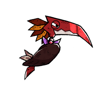 人の言葉を話す、鳥のような風貌をしたモンスター。人間を見下しており、自らの空腹を満たすためにルゥトを「下僕」として利用している。