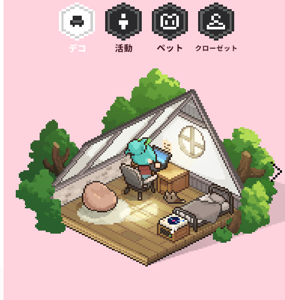 アバターも髪色・髪型、服装も変更ができ、お気に入りの分身を小さな部屋に住まわせることができます。