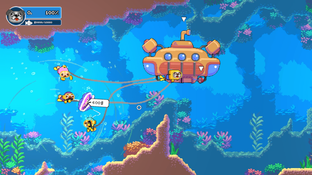深海に眠るお宝を回収していく、ピクセルアートで描かれた協力型アクションです。