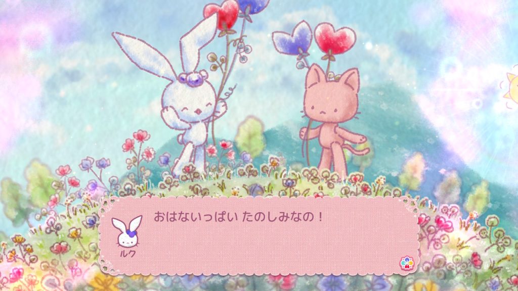 絵本のような柔らかく温かみのある世界を、「うさぎのルクちゃん」と「ねこのリシュくん」がお花を集めて「ハートバルーン」を作っていくお話。